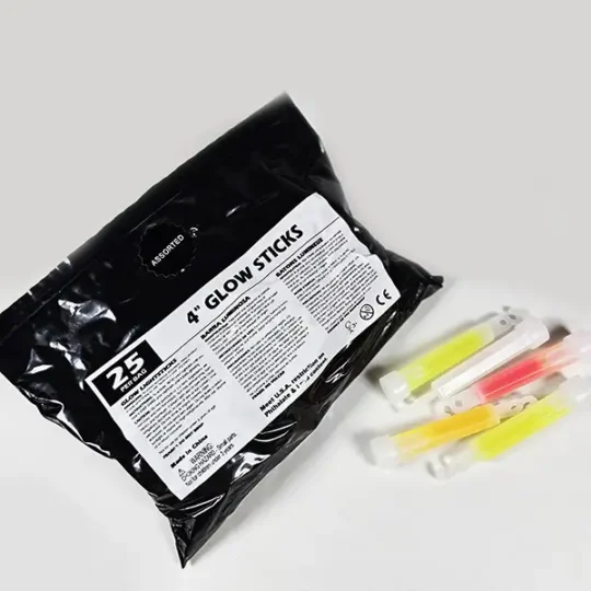 The 4-inch glow sticks buy pack of 25 are emit an impressive, long-lasting glow. Each pack comes in a convenient resealable bag with a lanyard. Assorted color glow sticks buy pack are great for Kids birthday parties, dance, glow in the dark party supplies, wedding receptions & grand send off, camping, night-time parade, pool party, decorations, movie in the park fundraising, making fun glow costumes, glow marker and safety signs, night time ball games, night golf, glowstick school project, bar mitzvah, relay for life, fourth of july fireworks show, cinco-de-mayo, mardi gras, concerts, festivals, kids safety lights, alternative to candy for halloween. and much more! All of our glow sticks meet United States and Western European toy standards, so you can rest assured that our glow products are tested to meet the latest industry standards.